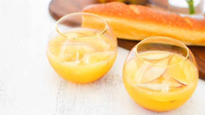 Wine, orange juice and fruit! Boom, cocktail!