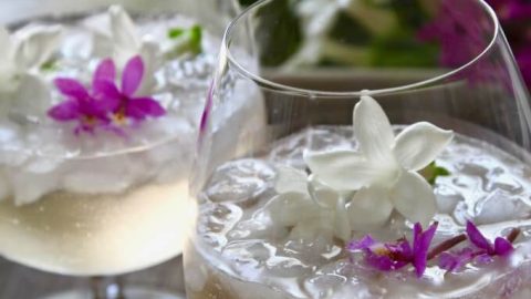 A light cocktail perfect for spring with some pretty ice cubes!