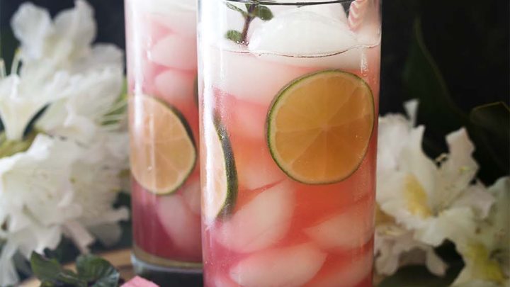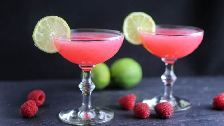 Gorgeous pink gin cocktails. Raspberry and lime combine for this tart and refreshing drink!