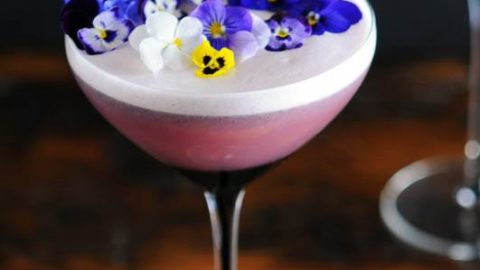 Blackberries and lavender collide with gin and egg whites make great spring cocktails with edible flowers on top!
