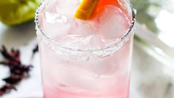 A delicious hibiscus twist on the classic Paloma, a refreshing drink for sure!