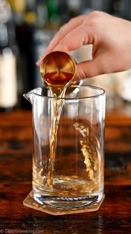 This is a mixing glass cocktail, meaning you don’t need a cocktail shaker. Use a mixing glass, long bar spoon and Hawthorne strainer. Also, make sure to add enough ice to chill this fall cocktail recipe.