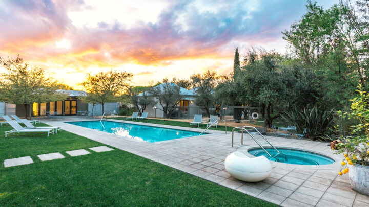 A rural luxury escape on 258 acres of rolling vineyards and oak tree groves. Sleek and minimal design with clean lines and a lot of glass. 11,500 square foot spa, zero edge pool and seasonal pool side restaurant.