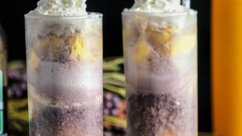 This dessert cocktail is a treat! A great combo of vanilla ice cream, grape soda and vodka brings back fun childhood memories and fun flavors!