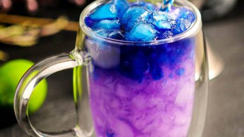 This super fun color changing drink is tasty as well as a showstopping fun party trick for entertaining! This purple and blue twist on the classic Moscow Mule makes for a refreshing sip!