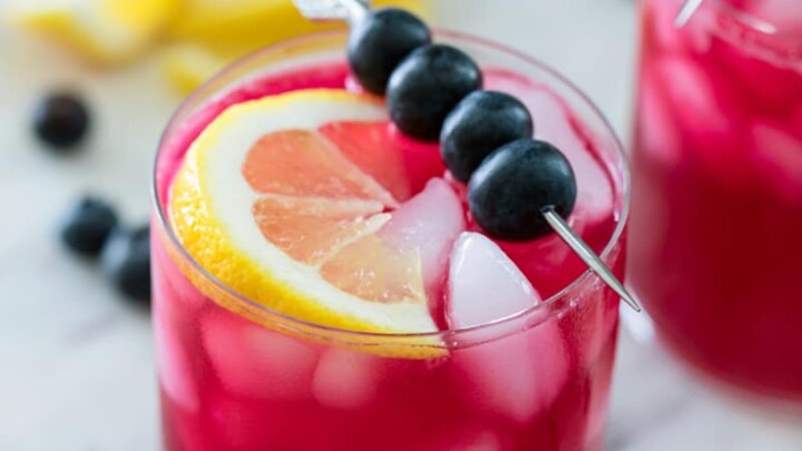 This easy tea cocktail is full of flavor with Hibiscus tea, blueberry infused vodka and fresh lemon simple syrup for a lovely floral and fruity sip to cool off with!