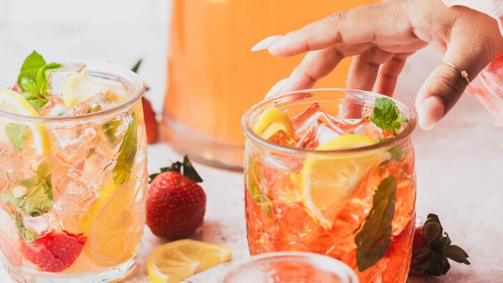 We think summer can be the best season for cocktails, I mean we love our themed holiday cocktails for sure. But, summer makes for so many ways to enjoy fresh fruit, fresh herbs, bubbles and icy cold drinks. Bunches of fresh mint from our cocktail garden, along with basil, sage and thyme make for great additions to drinks. The fresh fruit options are endless: watermelon, fresh berries, peaches, etc. Summer is all about seasonal drinks.