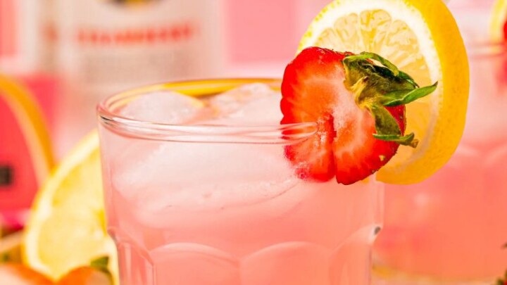This refreshing pink cocktail is a simple combo of vodka, strawberry rum and pink lemonade. Can't get easier or prettier!