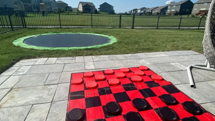 A splash pad, putting green, fire pit and basketball court outside. A commercial kitchen with (3!) dishwashers, a bee themed tea room, a game room with ping pong, shuffleboard, arcade games and more inside!