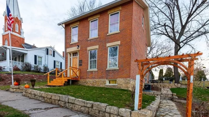 This gorgeous mansion in Galena, Illinois was built by a brewer from Bavaria in 1842. It features a cellar that was once his brewery and tavern. It has hot water heated floors, a dry bar, electric fireplace and shuffleboard, along with room to enjoy a cold beer!