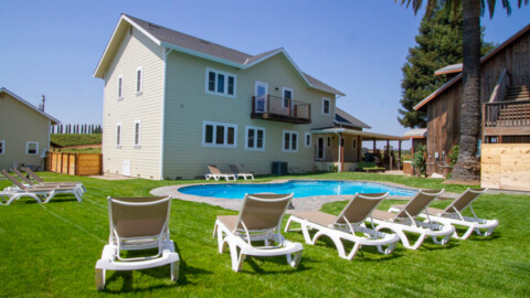 Pinot Noir house (The one we stayed in) has 3 bedrooms/3 bathrooms, a pool and a hot tub.